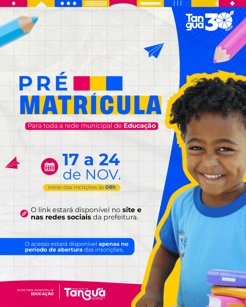 Inscrições online de 17 a 24 de novembro, exclusivamente pelo site: PRÉ-MATRÍCULA