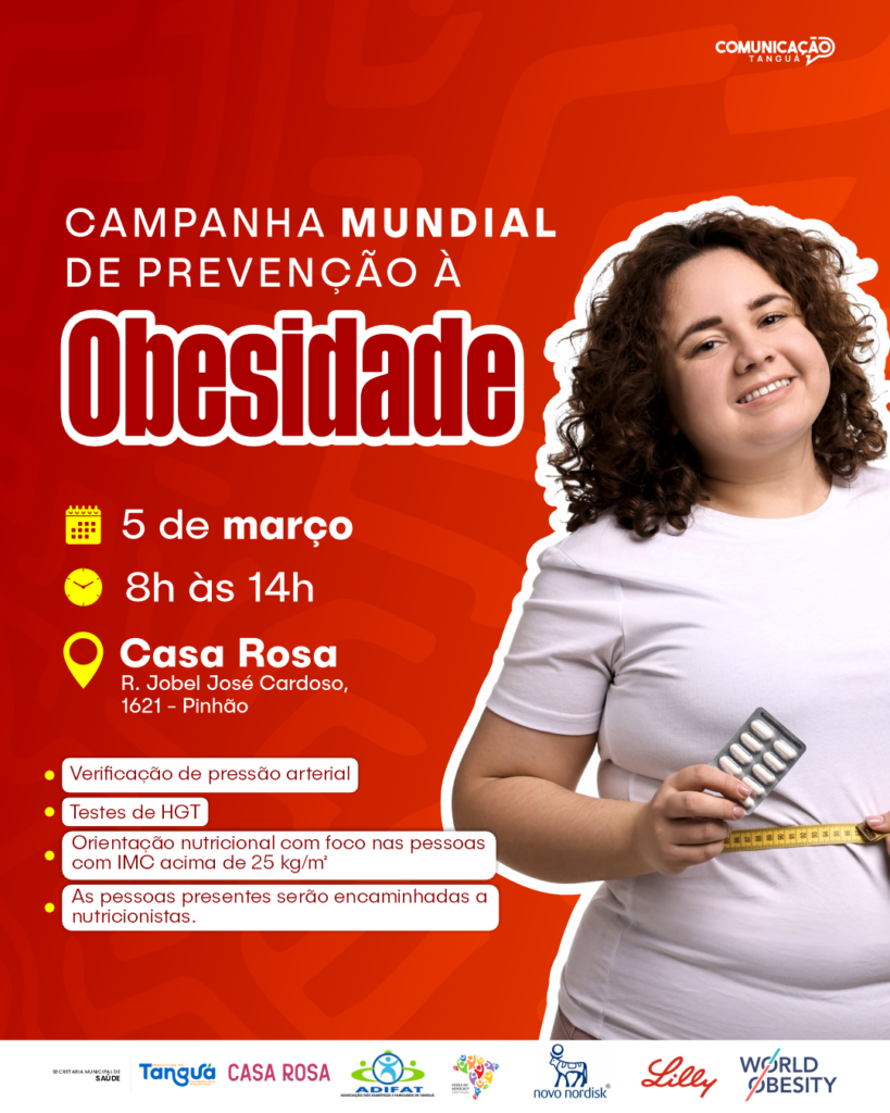 A Prefeitura de Tanguá, por meio da Secretaria Municipal de Saúde, apoia a Campanha Mundial de Prevenção à Obesidade, iniciativa que integra um movimento internacional de conscientização sobre a importância da prevenção e do cuidado com a saúde.