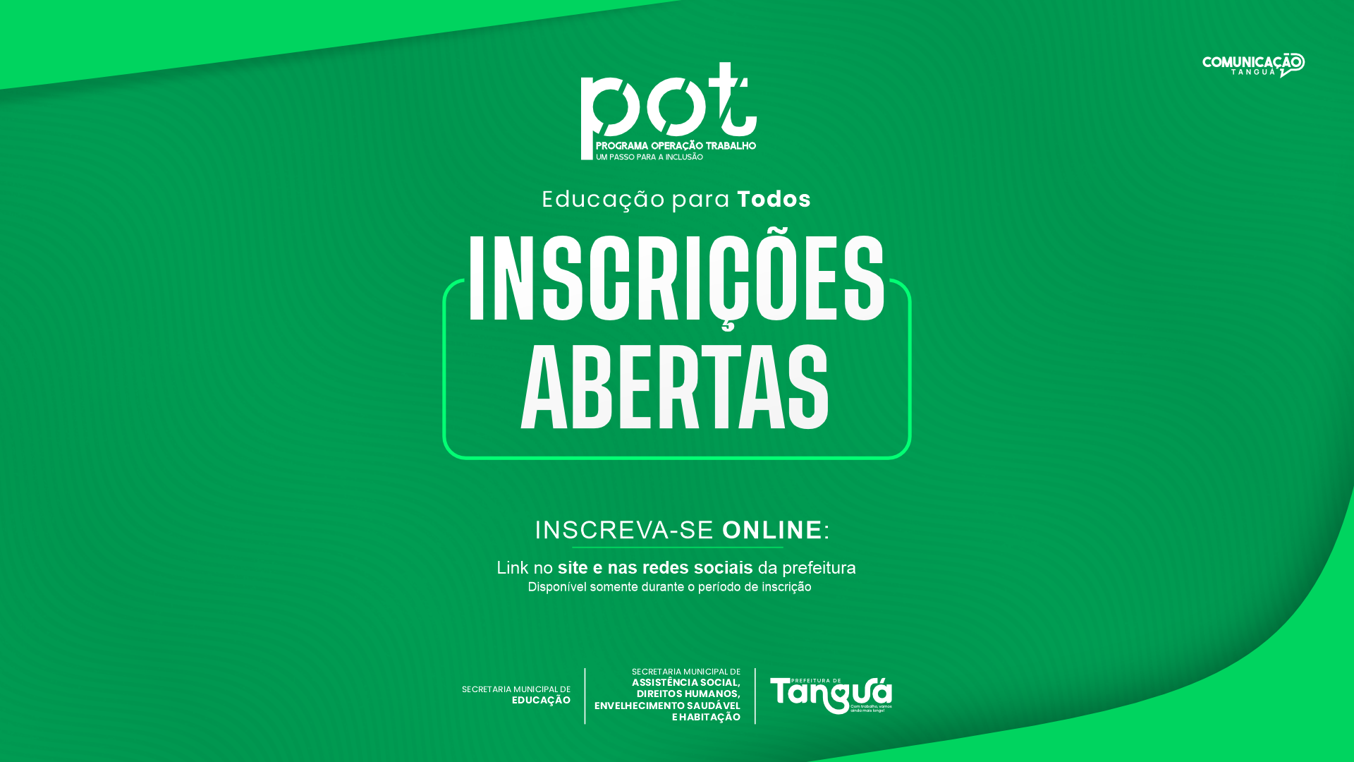 Prefeitura de Tanguá anuncia novas inscrições para o Programa Operação Trabalho — Educação para Todos