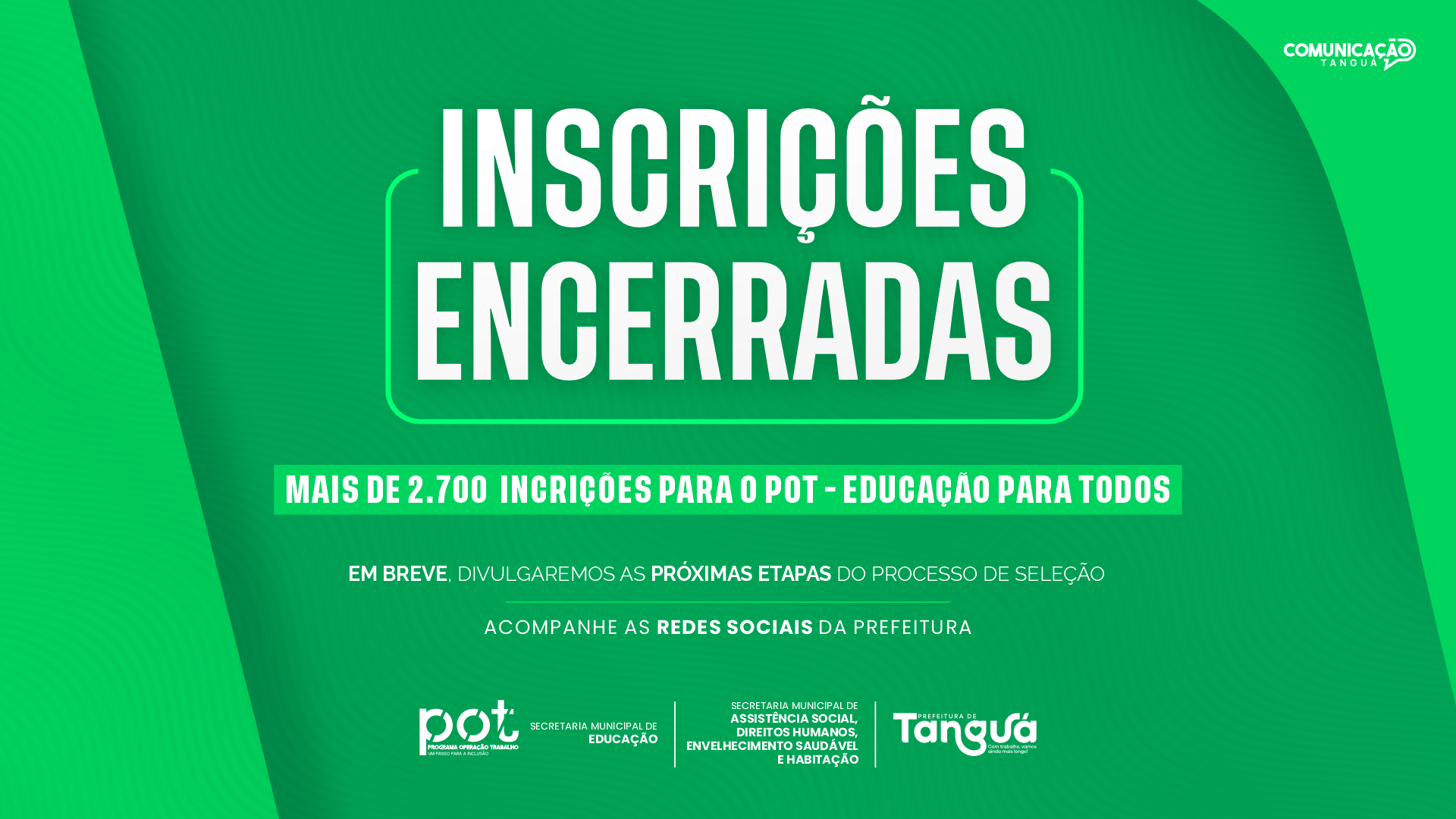 A prefeitura de Tanguá informa que já está disponível a lista oficial dos classificados para a etapa de verificação documental e entrevistas do Programa Operação Trabalho (POT) – Educação para Todos.