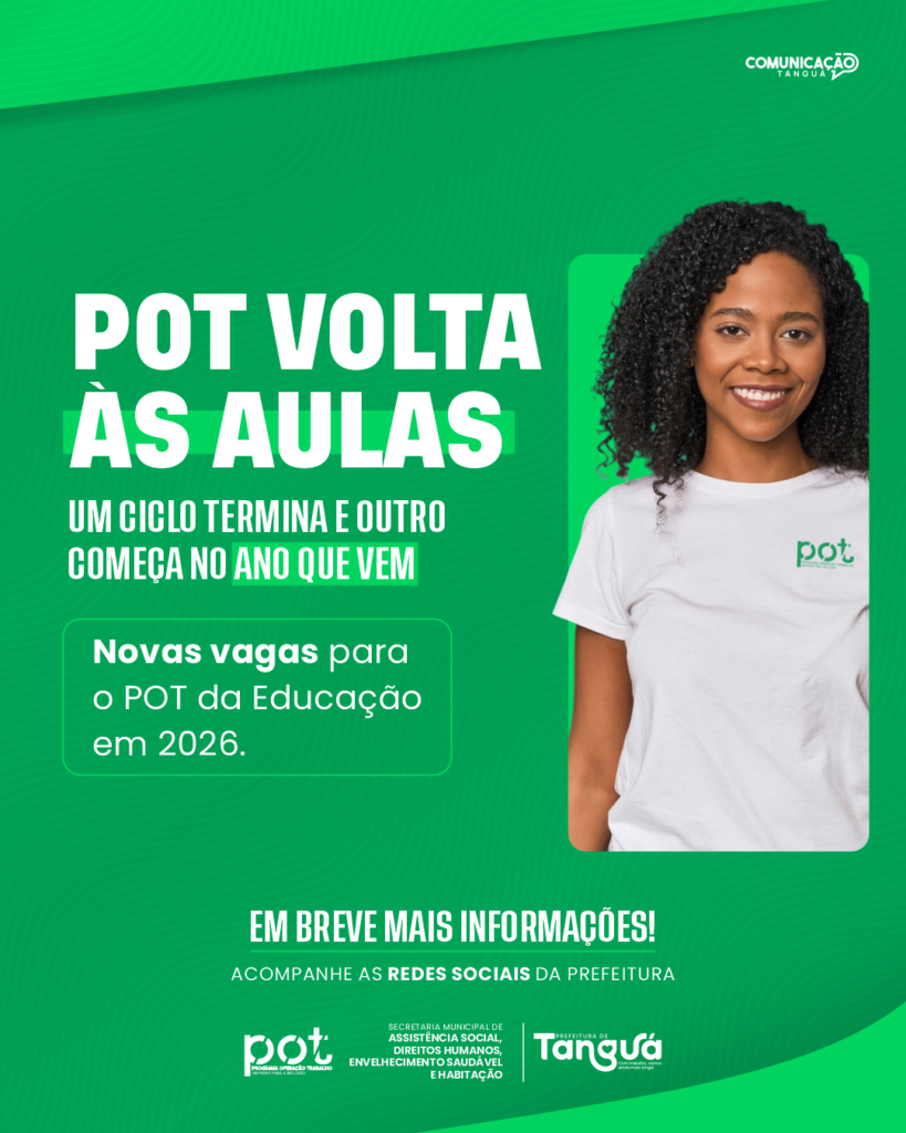 A Prefeitura anunciou nesta terça-feira (30) o encerramento do ciclo vigente do POT Volta às Aulas — Programa Operação Trabalho da Educação, que ocorrerá amanhã, 31 de dezembro de 2025, conforme estabelecem as normas que regem o programa assistencial.